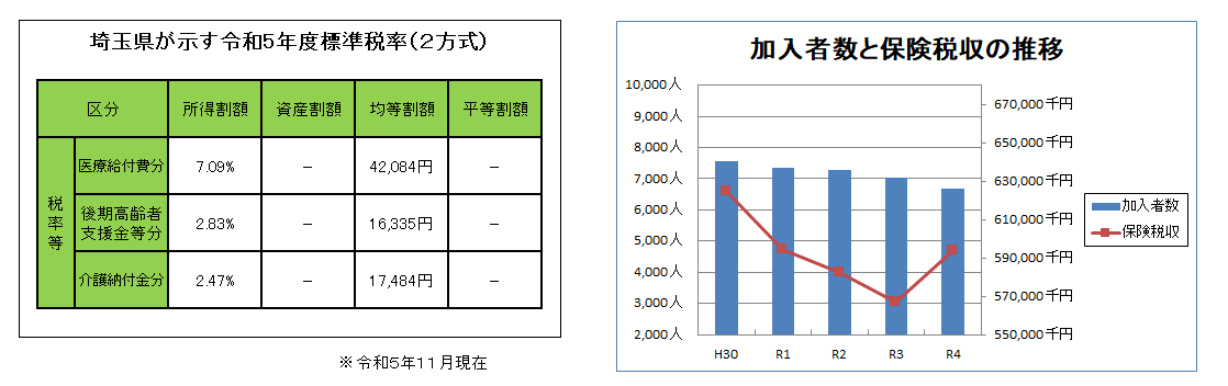埼玉県が示す標準税率に到達するよう、段階的に保険税率を引き上げるために、適正な税率設定を行いました