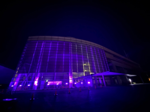 毎年、11月12日~25日は「女性に対する暴力をなくす運動期間」です。上里町では、この運動期間中、役場町民ホール北側のガラス面を紫色にライトアップするパープルライトアップを実施しました。パープルライトアップには、女性に対するあらゆる暴力の根絶を広く呼びかけるとともに、被害者に対して「ひとりで悩まず、まずは相談してください」というメッセージが込められています。